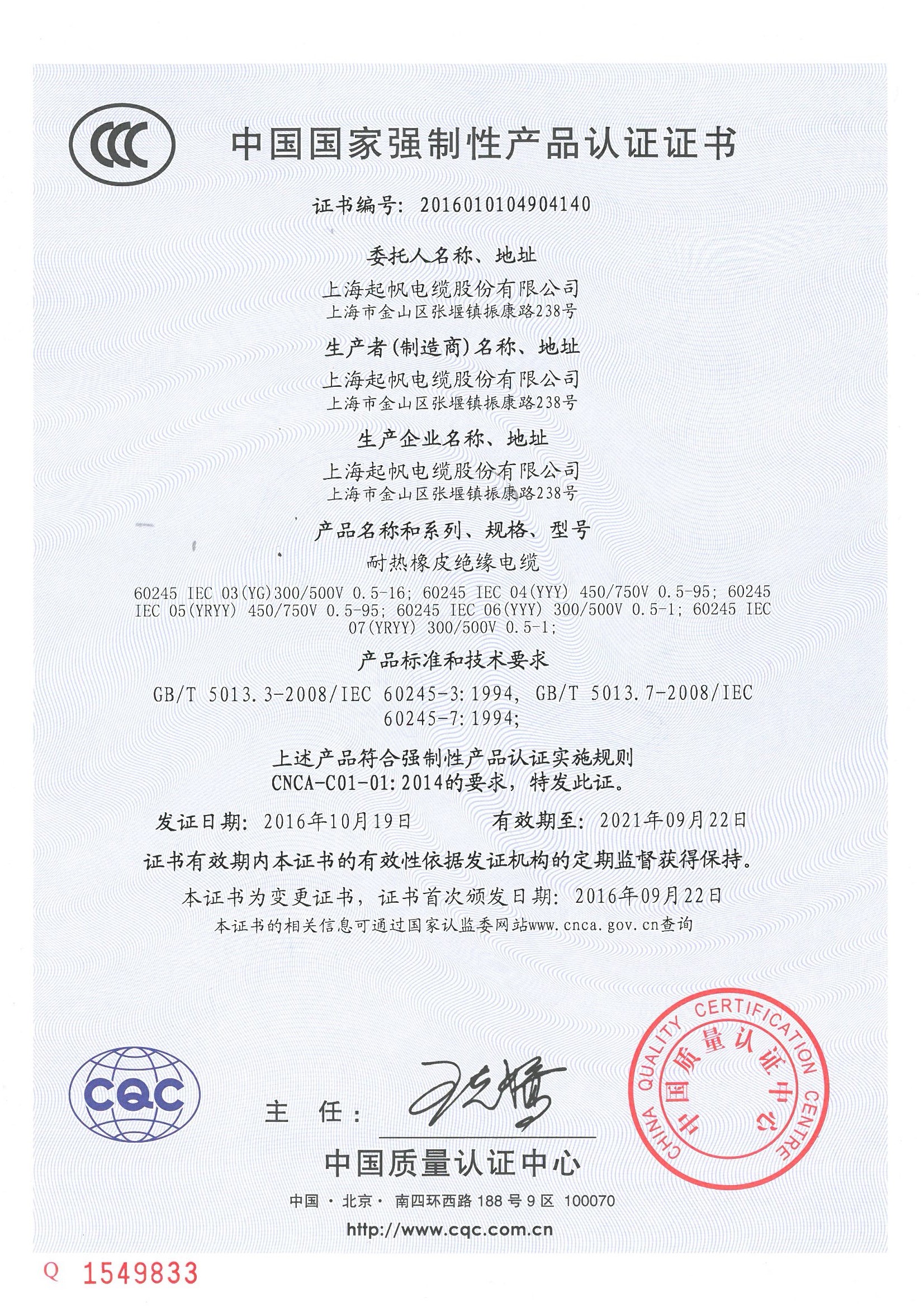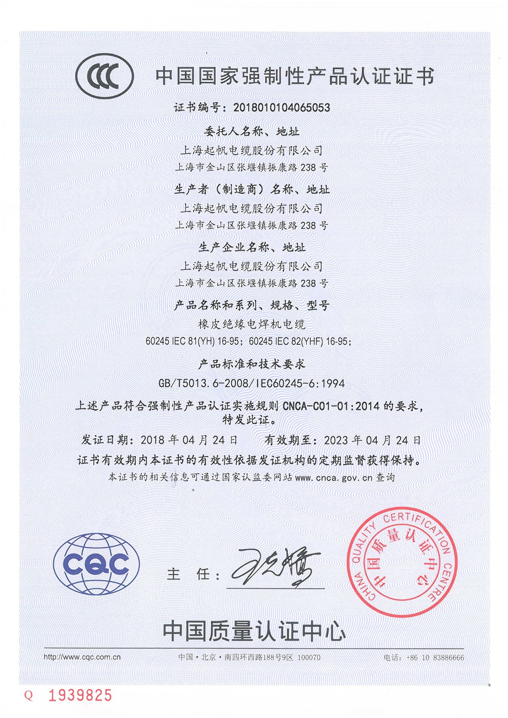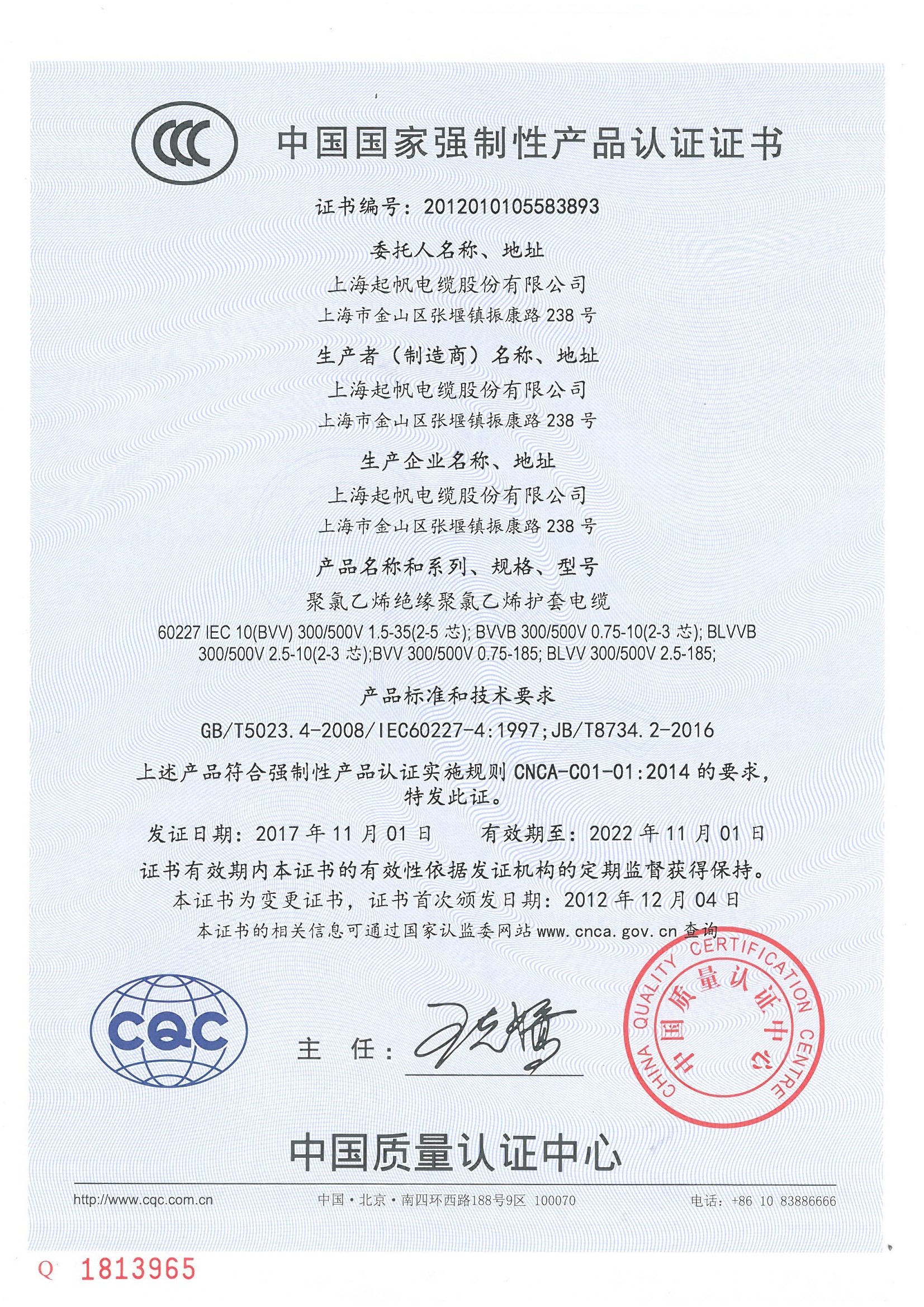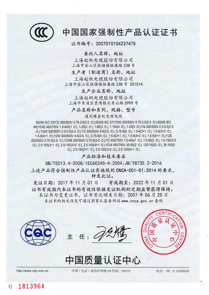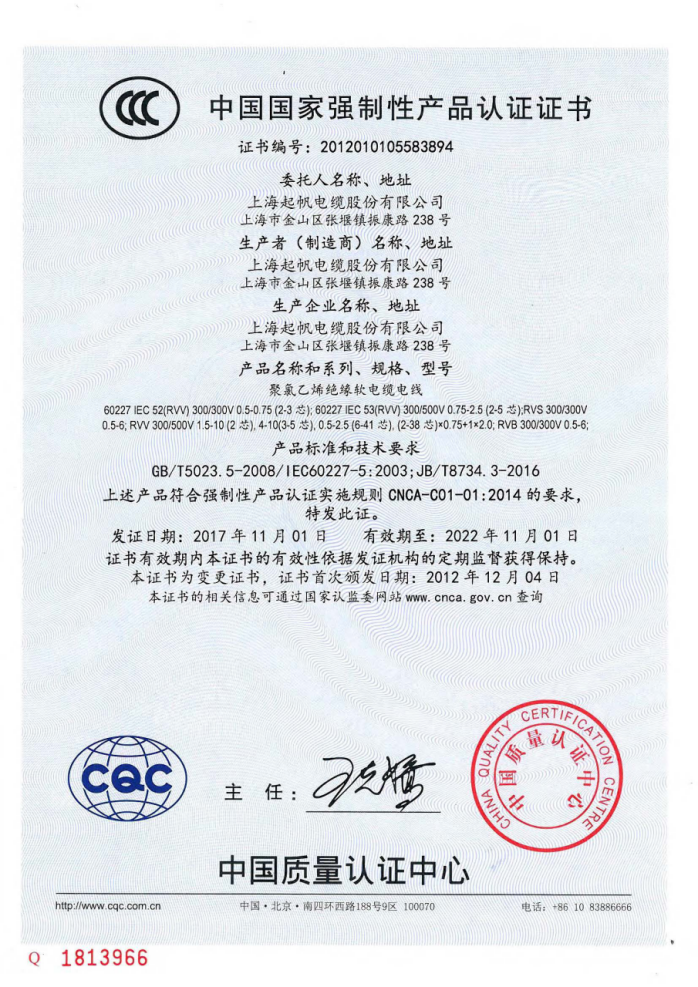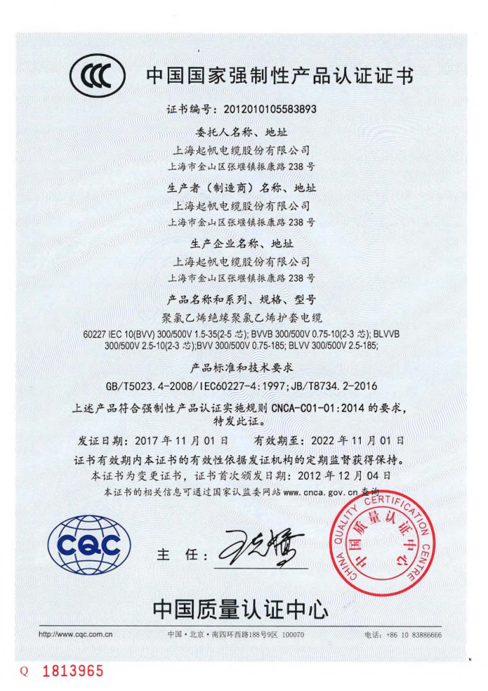 此文關鍵字:電線電纜資質,電線電纜廠資質,資質認證,起帆產品質量,起帆資質認證
